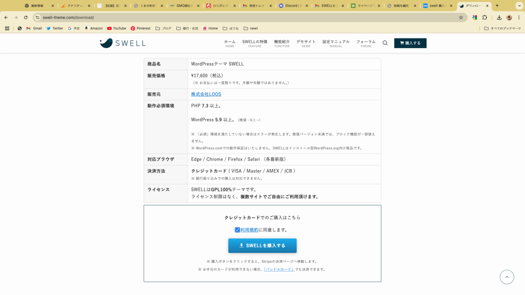 「SWELLを購入する」ボタンから購入ページへと進みます。